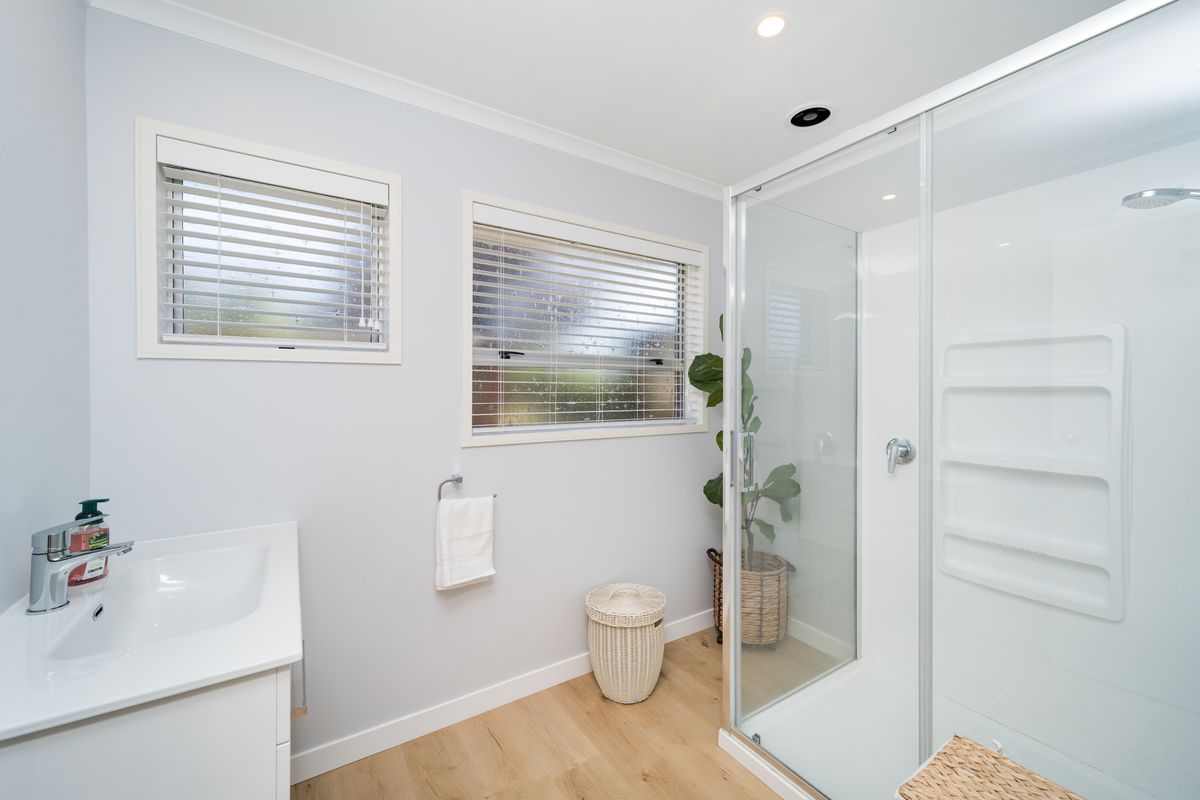 Inside, you’ll find two generous double bedrooms, a modern bathroom, and light neutral décor that creates a bright and welcoming atmosphere throughout. The spacious living area provides a comfortable place to relax or entertain, offering a heat pump to ensure year-round comfort no matter the season.